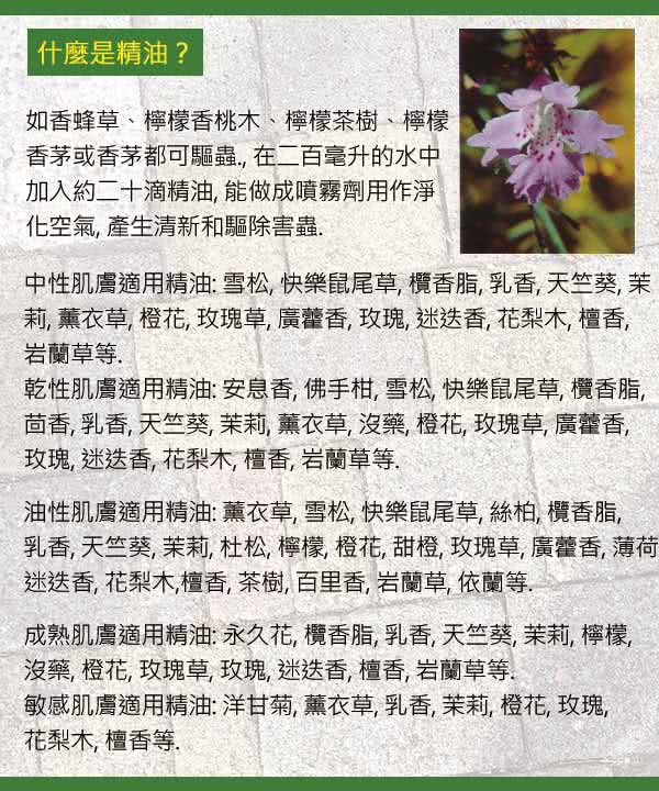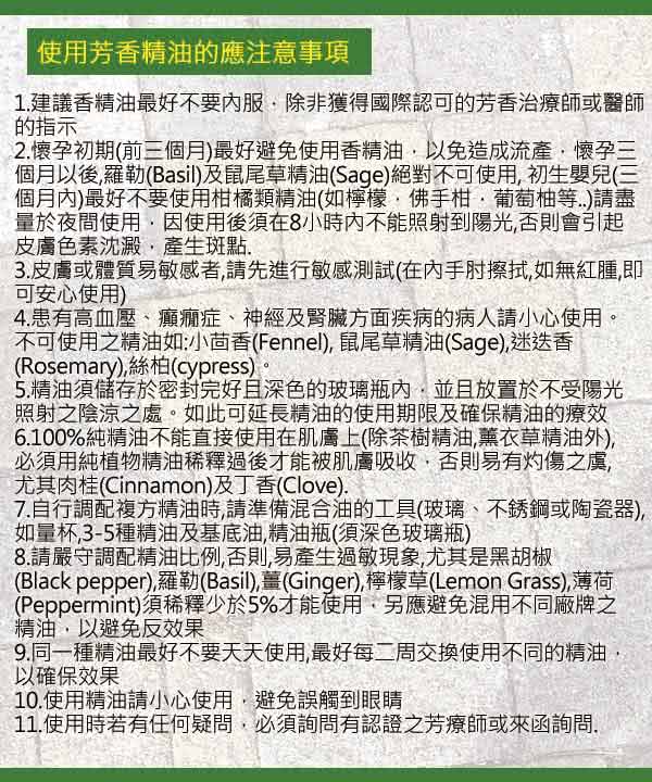 | 100%欖香脂(elemi)芳療精油 學名:Canarium luzonicum 萃取:植物 萃取方式:蒸餾法 植物來源國:法國 使用方式:可薰香,泡澡(精油+牛奶),調配按摩油(須加基底油稀釋), 精油比例:臉部按摩油精油量約1%-2%,身體3%-5%. |